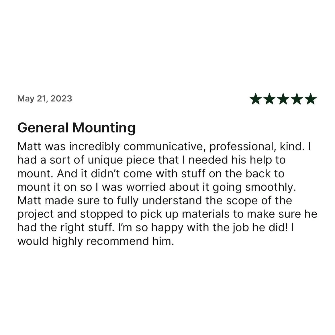 Matt is the consummate professional. I have worked with him several times on a variety of projects in my home and he has always gone above and beyond to make sure that furniture, hangings, and any other home items are put together quickly and safely. He is friendly and knowledgeable. I recommend him 100%!!
